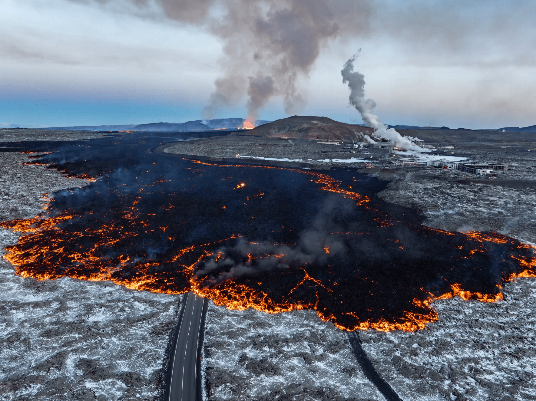 Of course, all this geological activity has an upside too: geothermal energy heats most of the homes here and then there’s the landscape: it’s not for nothing that scenes in Game of Thrones were shot round the corner, as was a Justin Bieber music video. People the world over come to Iceland on bucket-list adventures to see the waterfalls, the black sand beaches, the geysers and the glaciers. The Blue Lagoon, which was closed by the same lava flows that threatened Grindavik, adorns a million social media accounts, mine included.