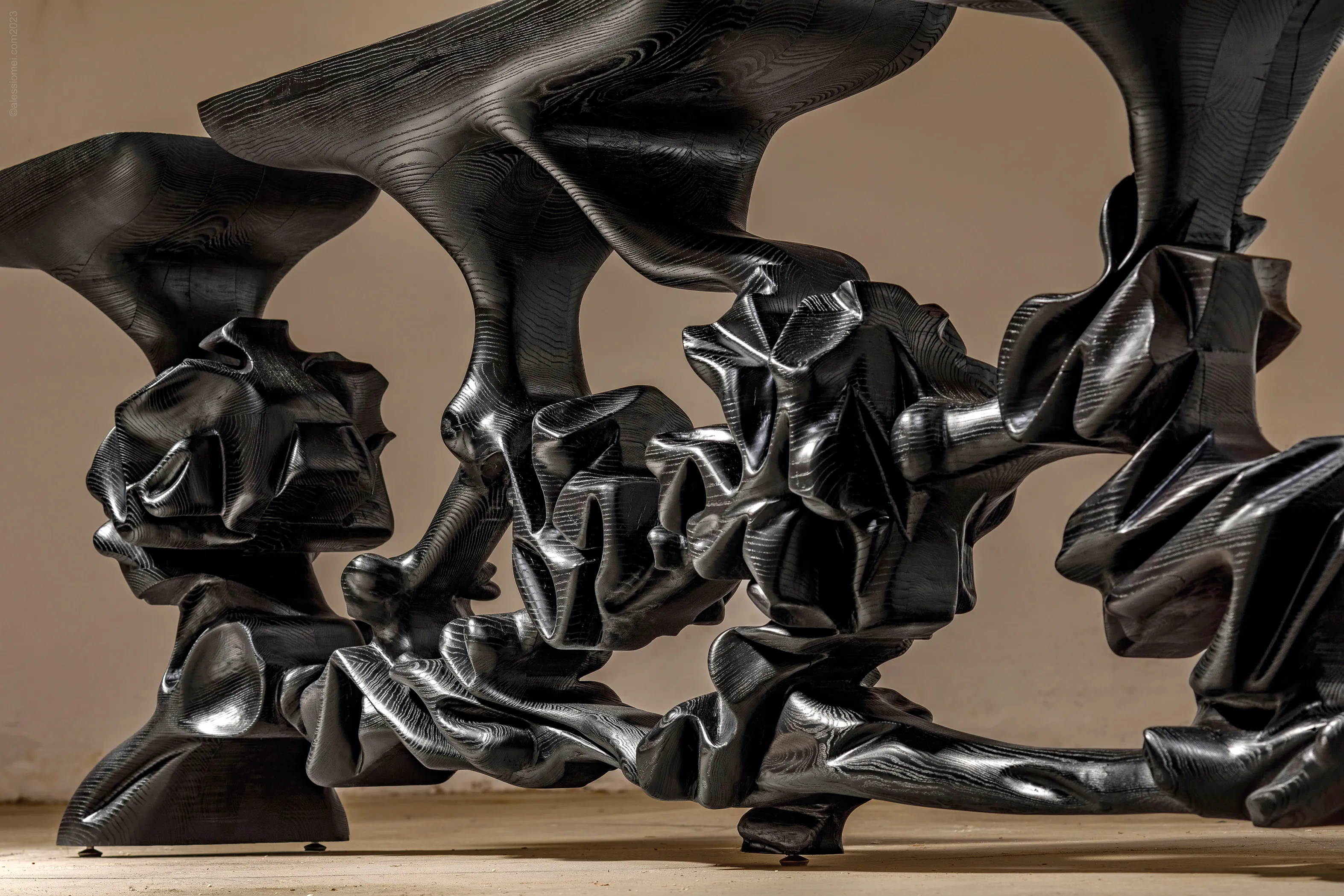 Mostly working in precious hardwood, Kadiri has created an extraordinary body of sculptural furniture that is in demand across the world. After studying in Japan and travelling widely, he returned to his studio in Casablanca armed with techniques on which to draw as he set about creating his sensual designs inspired by mythology.