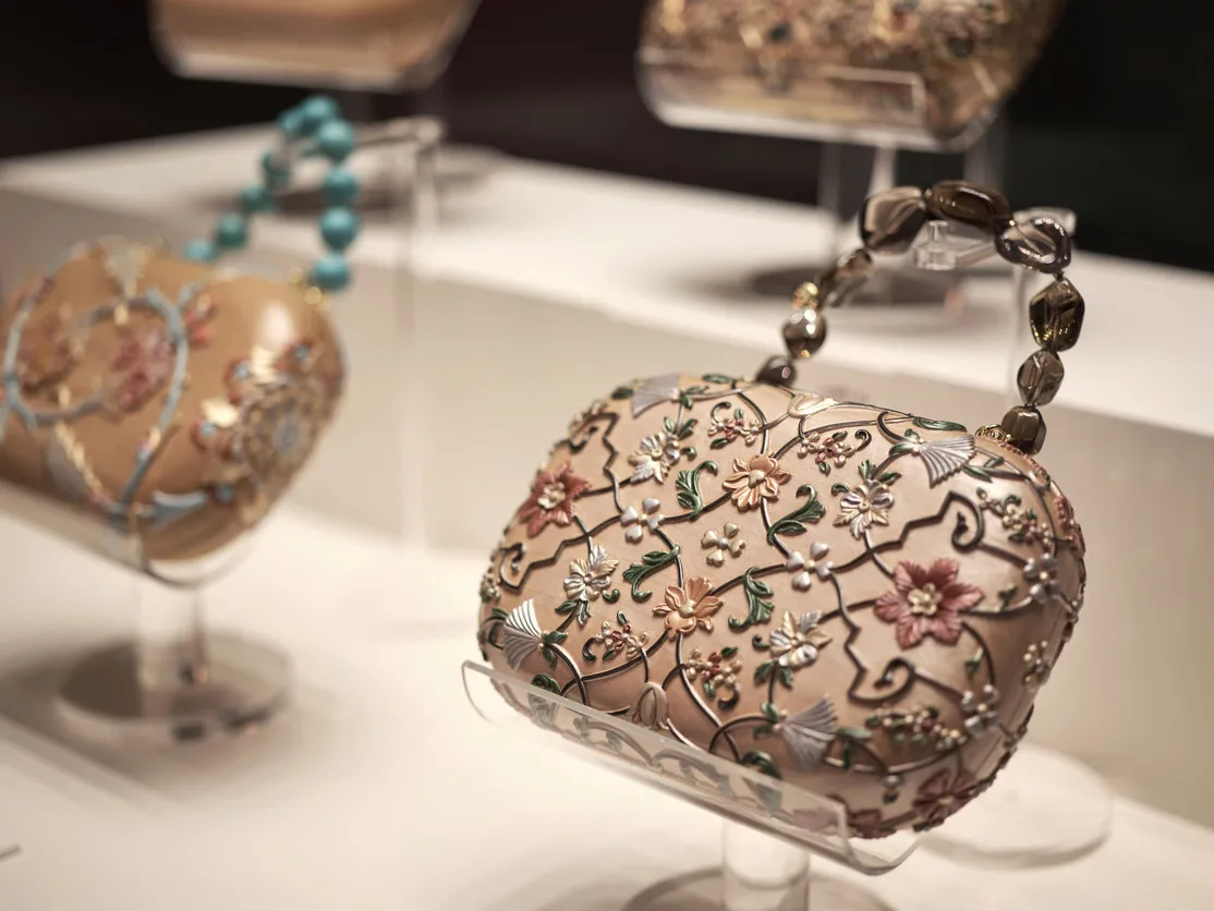 Among their creations are hand-carved and painted wooden handbags — which featured in an exhibition at the Museum of Islamic Art in Doha called Fashioning an Empire: Textiles from Safavid Iran — and hand-embroidered pure pashmina shawls. Jwahr, taken from the Arabic word jawaher, meaning “jewels”, typically uses materials such as walnut wood, saffron, kohl and gold leaf for its clutches, with up to 200 hours of carving required to produce each intricate design. Their creative journey, the founders say, “is deeply rooted in the culture and history of the region. We draw on elements such as intricate patterns and calligraphy, which have long been celebrated in Arab societies, using these to infuse our creations with spiritual depth. Our main inspiration, however, derives from Islamic culture, particularly its art, history, architecture, design and symbolic significance.