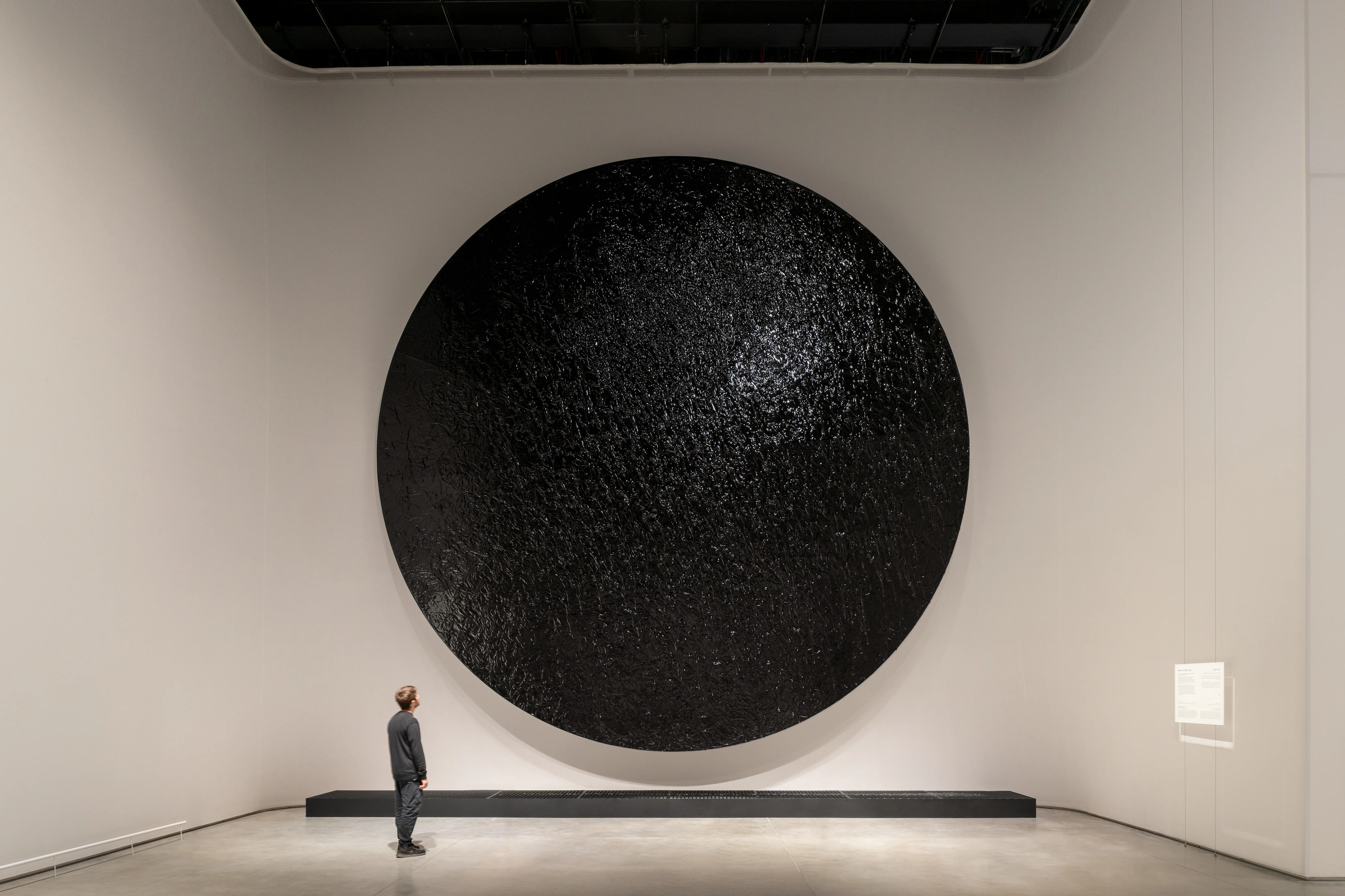 The decision to structure the Biennale in parts, beginning with sacred objects, means we start with a foundation of Islamic tradition, especially given the inclusion of the Qur’an and the silk and gold covering (known as kiswah) of the Ka’aba in Mecca— the two most universally sacred elements of Islam. Qur’ans from Medina, the second-holiest city, were brought in, lending a gravity that was both symbolic and spiritual. And yet the transition to the contemporary – overseen by curator Dr Julian Raby (a British former director at the Smithsonian) – is smoother than might be expected: we move from objects such as the golden water spout of the Ka’aba and the copper key (1230-1349 CE) that has been entrusted for safekeeping to 100 generations of the same family to a corridor of woven textiles, a chandelier representing prayer as a “supralanguage” — an act that transcends verbal and visual communication — and my personal favourite, Italian artist Arcangelo Sassolino’s Memory of Becoming, a vast rotating black steel disc dripping with industrial oil – the constant flux perhaps suggesting Homer’s “wine-dark sea”. It is a surprisingly successful progression.