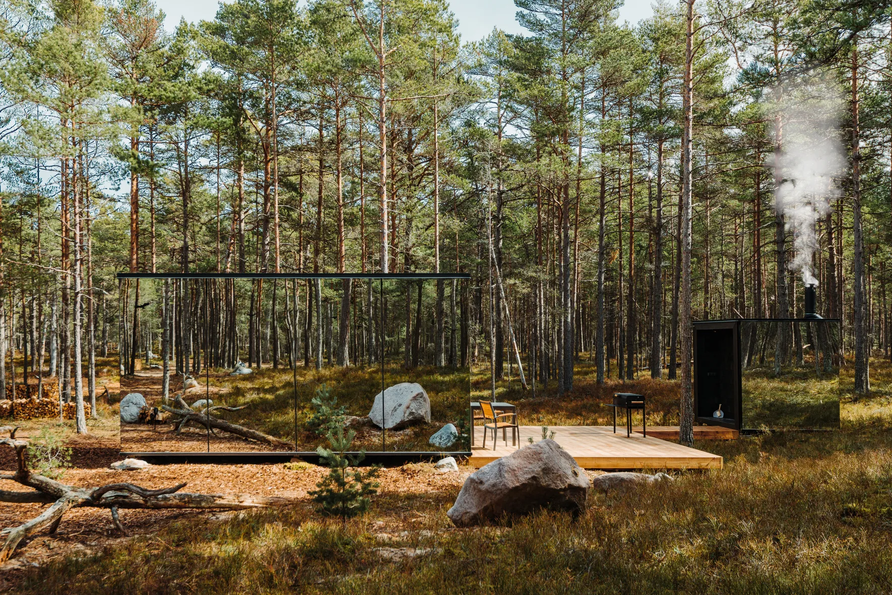 A mirrored cabin in Laheranna, Estonia (Magnus Heinmets)