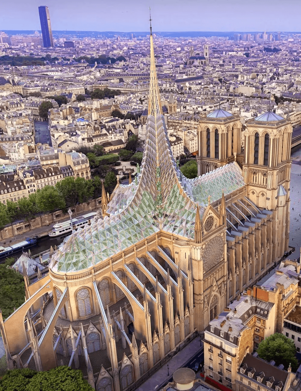 Macron settled on an ambitious deadline of recreating Notre Dame within five years (presumably to coincide with the 2024 Olympics) with the help of his billionaire friends, but some French parliamentarians had other ideas. At the end of May the Senate passed a bill stating that the reconstruction must be faithful to the “last known visual state” of the building, and that the use of any new materials would need to be justified, potentially ruling out a crystalline flèche — one of the more common contemporary ideas. Yet last month it was overruled by the National Assembly, the lower of the two houses of the French parliament, which is dominated by Macron’s En Marche! party. The result is a law that does not directly address what form the reconstruction, and consequently the design of the spire, will take, but mostly outlines how the €850 million pledged by individuals and corporations will be dispensed. The squabbling is likely to continue.